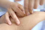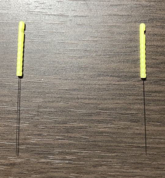 治療に使用する鍼は、使い捨ての鍼を使用していますので、衛生面でもご安心下さい。日本製で軟らかい、髪の毛程度の細い鍼(太さ0.20㎜前後)を使用しています。